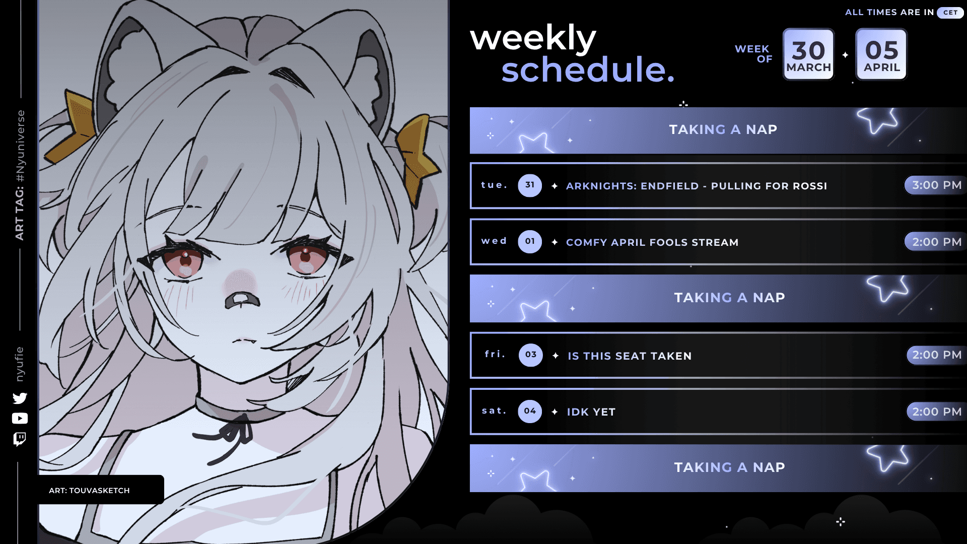 wednesday will be a comfy april fools stream, expect a lot of reading!